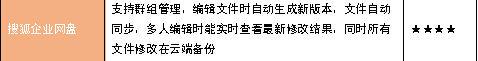 在协同办公方面,六款参评的产品均提供了在线分享、即时通讯、文档修改等常州见功能。但相比之下联想企业网盘、搜狐企业网盘在群组管理、文件分发等 方面的设计更为完善。特别是联想企业网盘,其产品在分级分权限管理的模式下,可以更为轻松的实现企业内部、企业与分支机构、企业与合作伙伴间的协同办公, 并与企业中其他的应用信息集成。智能数据汇总、云端多人协同、安全与日志审计等诸多种功能,令一些大企业中的跨区域协作更为简单。这也让我们看到,自从 2006年起联想在云计算方面的长期耕耘,其设计团队对于企业网盘在功能和设计上的理解已经达到一个新的高度。