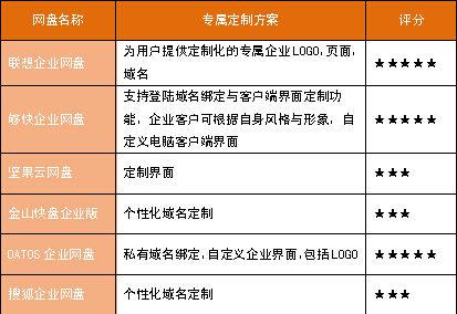 与个人网盘相比,企业级网盘的定制化服务可以说是一大特色。按企业需求专属定制网盘页面,在企业内外部打造高端企业品牌形象。定制企业专属二级域名 地址,便于员工和客户记忆和搜索。添加企业Logo和联系方式,彰显企业形象,更易于商业宣传。从参评的六款产品中可以看出,够快企业网盘、联想企业网盘 以及OATOS企业网盘所提供的解决方案