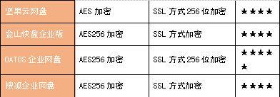 在安全方面,此次参评的多数网盘厂商都是非常重视的。为了给企业用户提供更为可靠的存储环境,联想企业网盘、搜狐企业网盘、OATOS企业网盘以及 金山快盘企业版均采用了AES-256算法等高强度加密和严格的权限管理。使用128、192 或256 位密钥,并且用128 位数据块分组对数据进行加密和解密,可以说非常适合办公环境的加密方案。