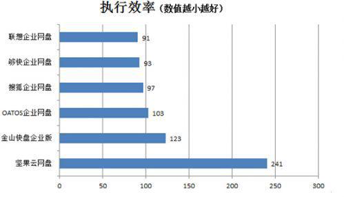 从测试结果可以看出,在参评的六款网盘中,其中联想企业网盘、搜狐企业网盘和够快企业网盘在上传上述文件时的传输速度最高,在相同的网络环境下,其 传输时长均在1分30秒左右。依赖于高质量机房以及较高的出口带宽,联想企业级网盘的传输速度相对其他五款产品而言更为稳定,且传输效率更高。