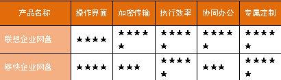 从产品设计、应用体验、协同办公、文件管理和操作界面的横向评测中不难看出,在参评的六款企业网盘产品中,联想、搜狐、金山企业网盘凭 借全面的协同共享功能、细致的文件管理和人性化的操作界面,在参评的六款产品中脱颖而出。特别是联想企业网盘在扁平化的设计中提供灵活的组织架构匹配,多 层级的权限管理的解决方案给我们留下了深刻印象。中英文双语界面:两种语言,一键切换,充分考虑到跨国企业用户的应用体验,使国内外频繁的数据往来毫无障 碍。综合评星远远超过其他企业网盘,可以说是最适合各行业具有频繁大文件汇总、分发、管理需求的企业用户使用。