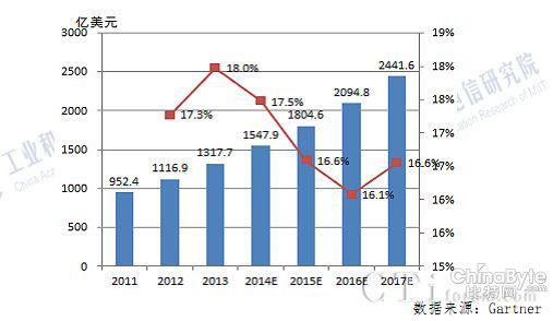 全球云计算市场快速平稳增长。2013年全球云服务市场约为1317亿美元,年增长率为18%,据预测,未来几年云服务市场仍将保持15%以上的增长率,2017年将达到2442亿美元。其中IaaS、PaaS和SaaS为代表的典型云服务市场在2013年达到了333.4亿美元,增长率高达29.7%.