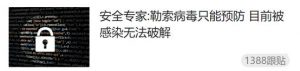 但是根据专家们的分析,针对这一次的病毒侵袭并不致命。