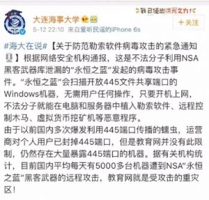 病毒蠕虫从英国迅速蔓延到了中国,中国高校成为重灾区: