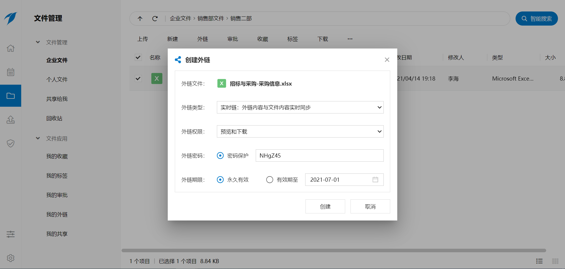 而在只需要获悉某个企业文件或企业文件夹的动态时,我们只需收藏它,当收藏的文件被编辑或被进行其它操作时,系统将实施推送操作动态。