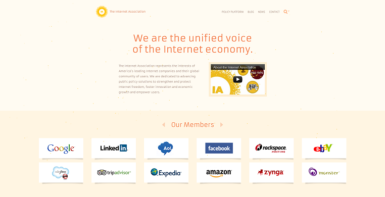 因特网协会号称是美国第一个代表网络经济的产业协会,七月间宣布成立时,对会员公司避而不谈。不过当时该协会成立宗旨就已很明确,即透过游说活动,推动公共政策与解决方案,以强化与确保开放、创新及自由的因特网。
